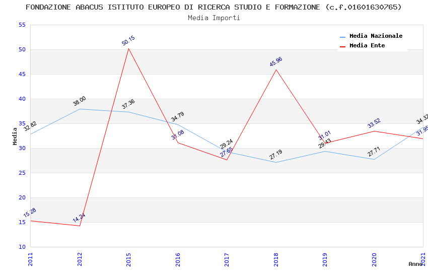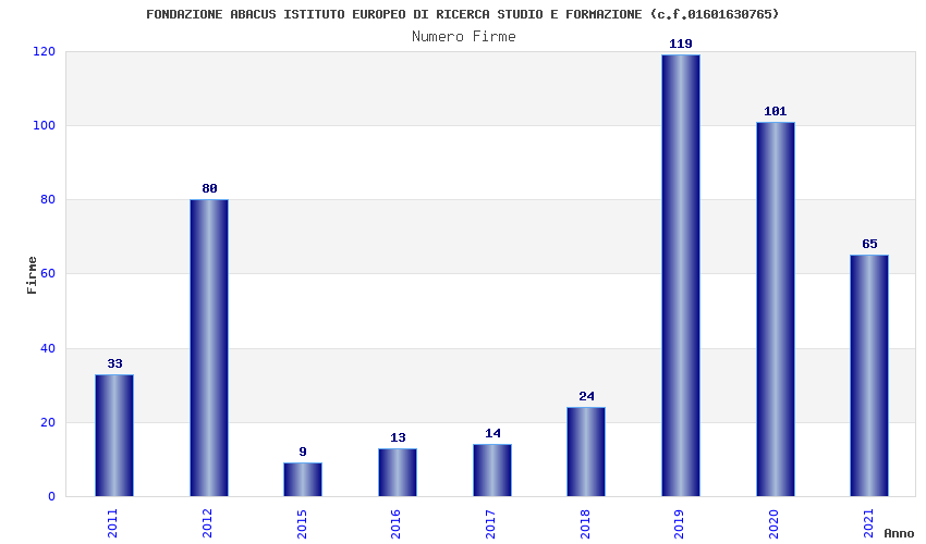 | Anno | Firme | Importi | Media | Naz. | Reg. | Prov. | Comu. |