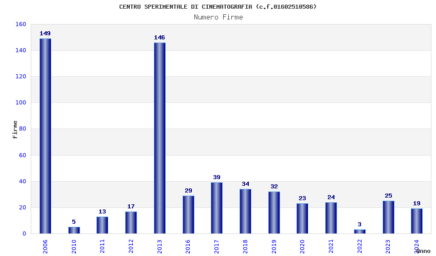 | Anno | Firme | Importi | Media | Naz. | Reg. | Prov. | Comu. |