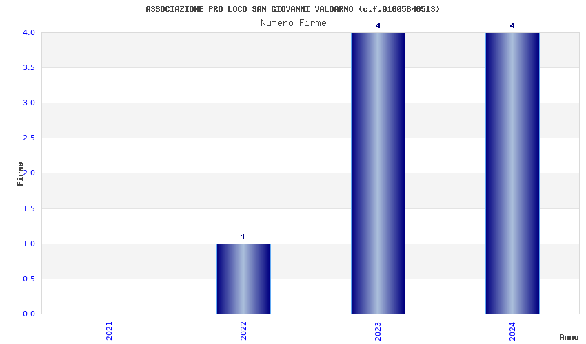 | Anno | Firme | Importi | Media | Naz. | Reg. | Prov. | Comu. |
