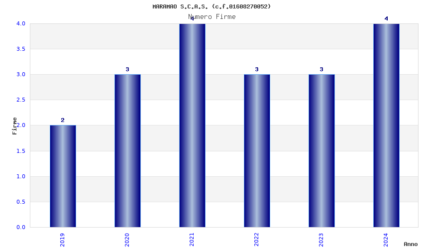 | Anno | Firme | Importi | Media | Naz. | Reg. | Prov. | Comu. |