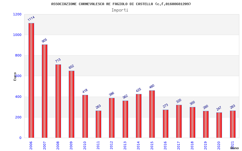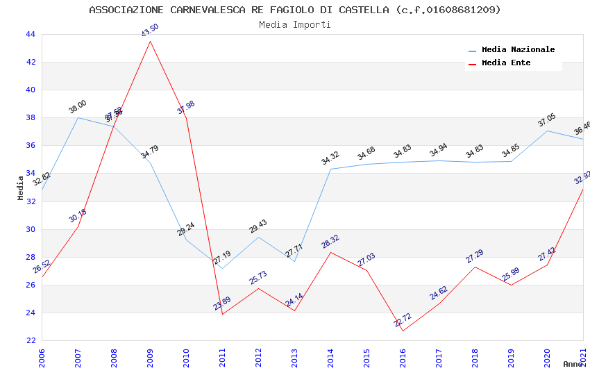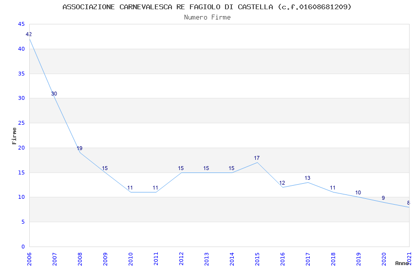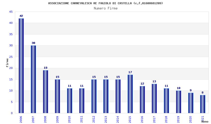 | Anno | Firme | Importi | Media | Naz. | Reg. | Prov. | Comu. |