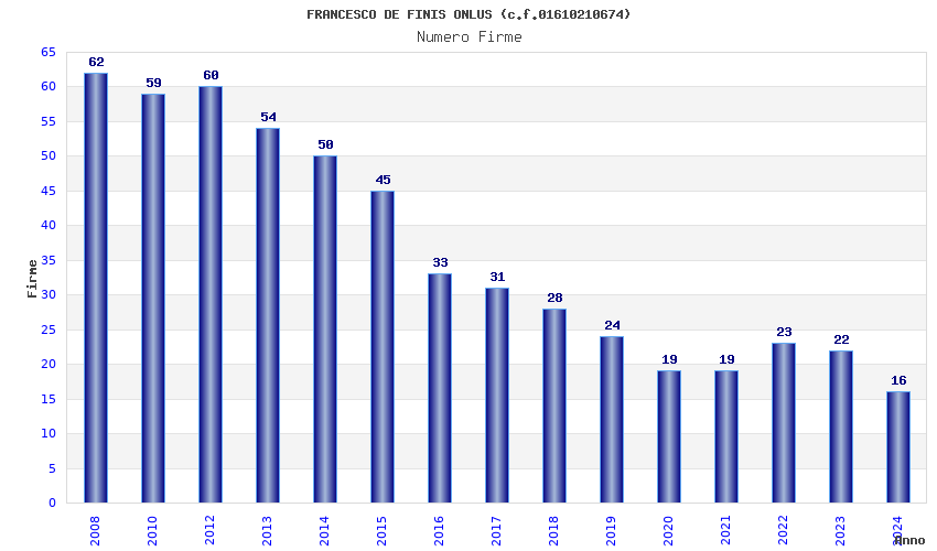 | Anno | Firme | Importi | Media | Naz. | Reg. | Prov. | Comu. |