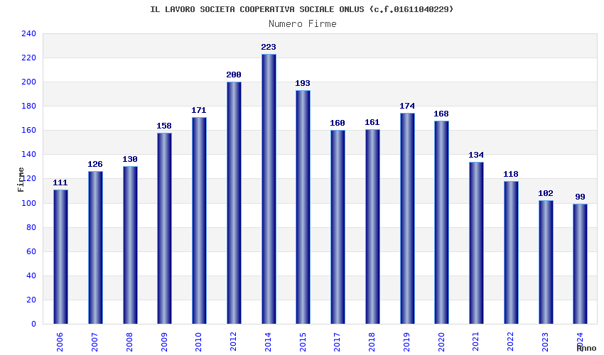 | Anno | Firme | Importi | Media | Naz. | Reg. | Prov. | Comu. |