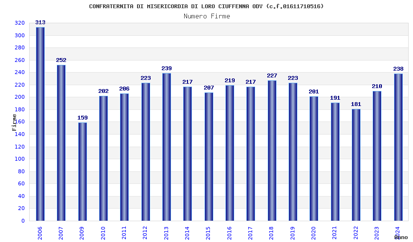 | Anno | Firme | Importi | Media | Naz. | Reg. | Prov. | Comu. |