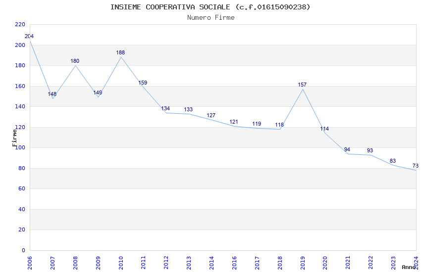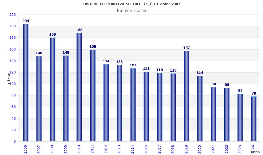 | Anno | Firme | Importi | Media | Naz. | Reg. | Prov. | Comu. |