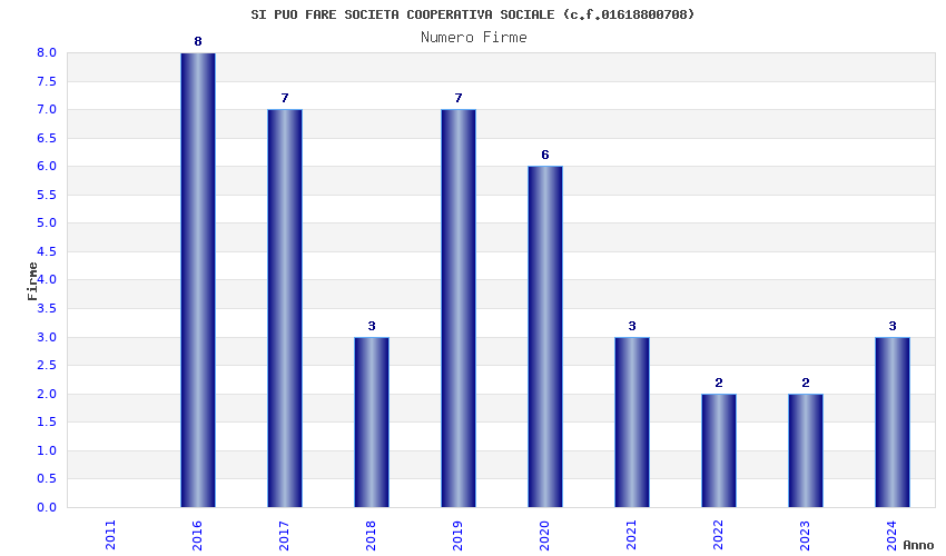 | Anno | Firme | Importi | Media | Naz. | Reg. | Prov. | Comu. |