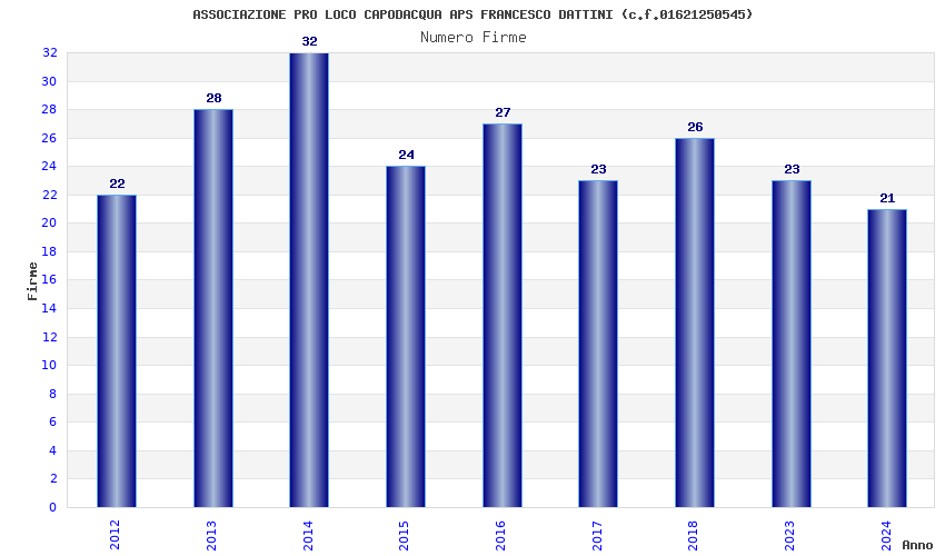 | Anno | Firme | Importi | Media | Naz. | Reg. | Prov. | Comu. |