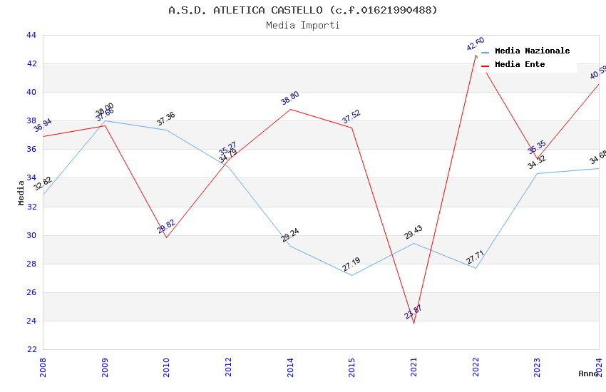 | Anno | Firme | Importi | Media | Naz. | Reg. | Prov. | Comu. |