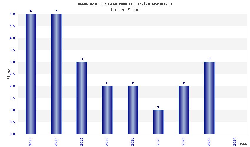 | Anno | Firme | Importi | Media | Naz. | Reg. | Prov. | Comu. |