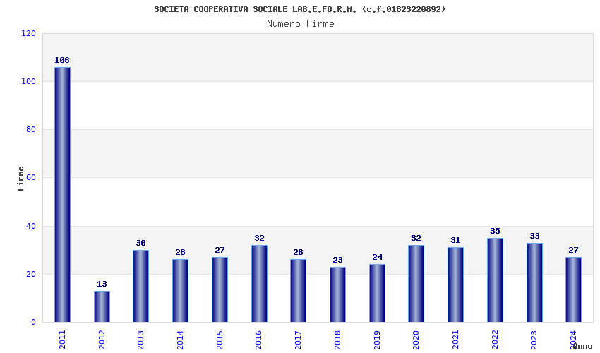 | Anno | Firme | Importi | Media | Naz. | Reg. | Prov. | Comu. |