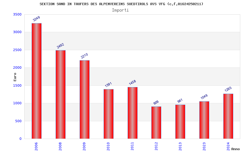 | Anno | Firme | Importi | Media | Naz. | Reg. | Prov. | Comu. |