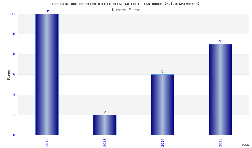 | Anno | Firme | Importi | Media | Naz. | Reg. | Prov. | Comu. |
