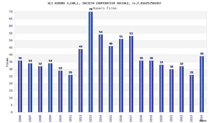 | 2013 | 70 | 1.839,06 | 26,27 | 19.455 | 4.449 | 189 | 3 |