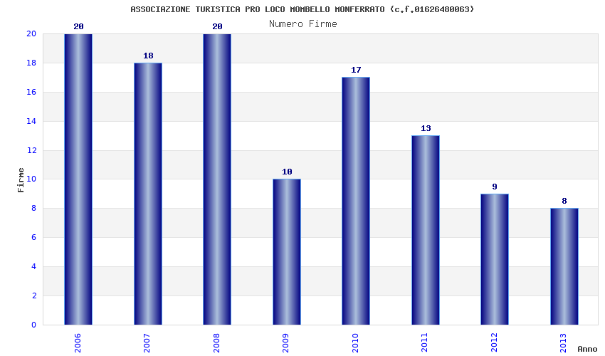 | Anno | Firme | Importi | Media | Naz. | Reg. | Prov. | Comu. |