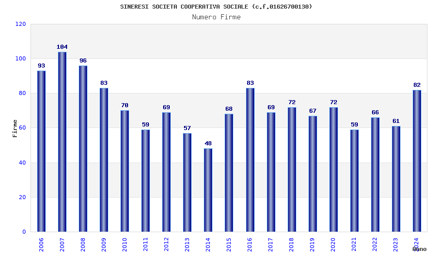 | Anno | Firme | Importi | Media | Naz. | Reg. | Prov. | Comu. |