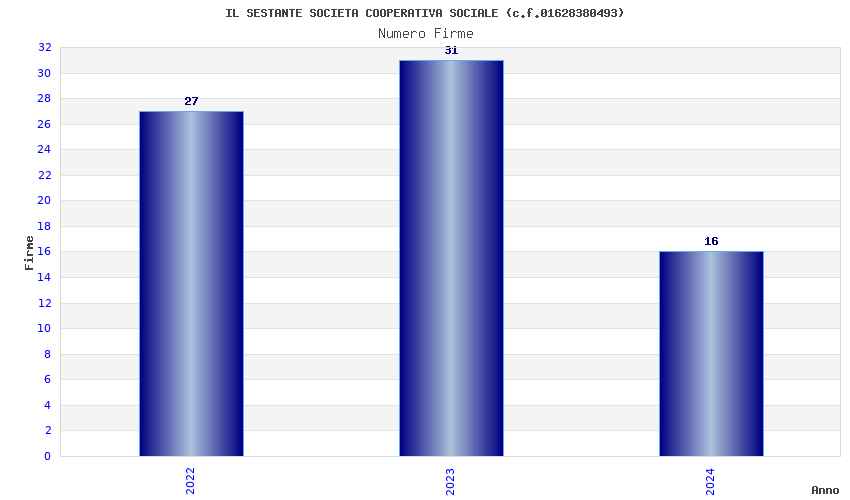 | Anno | Firme | Importi | Media | Naz. | Reg. | Prov. | Comu. |