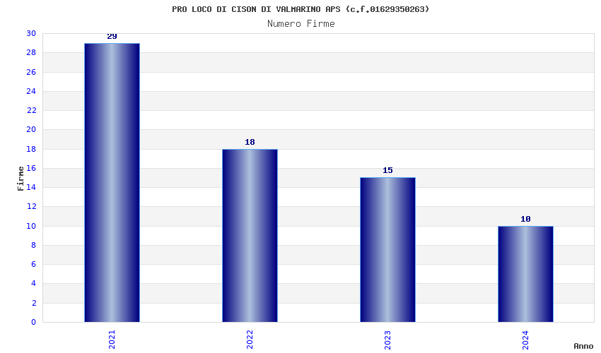 | Anno | Firme | Importi | Media | Naz. | Reg. | Prov. | Comu. |