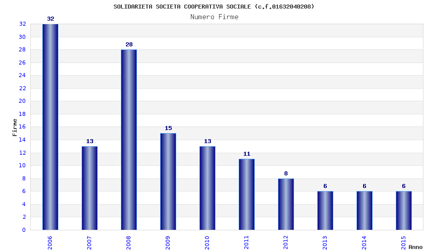| Anno | Firme | Importi | Media | Naz. | Reg. | Prov. | Comu. |
