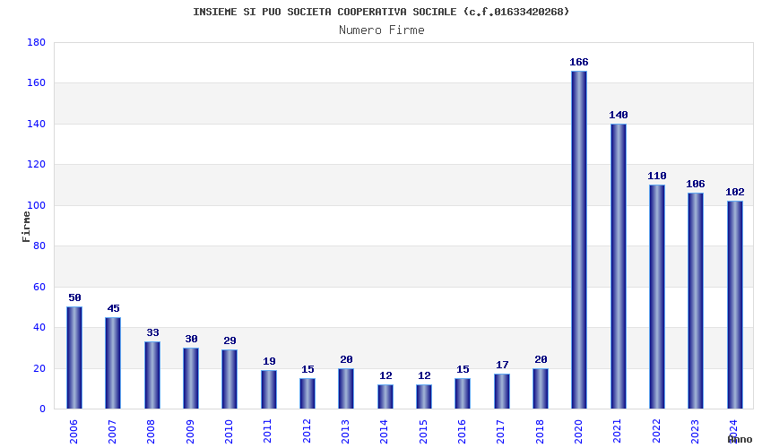 | Anno | Firme | Importi | Media | Naz. | Reg. | Prov. | Comu. |