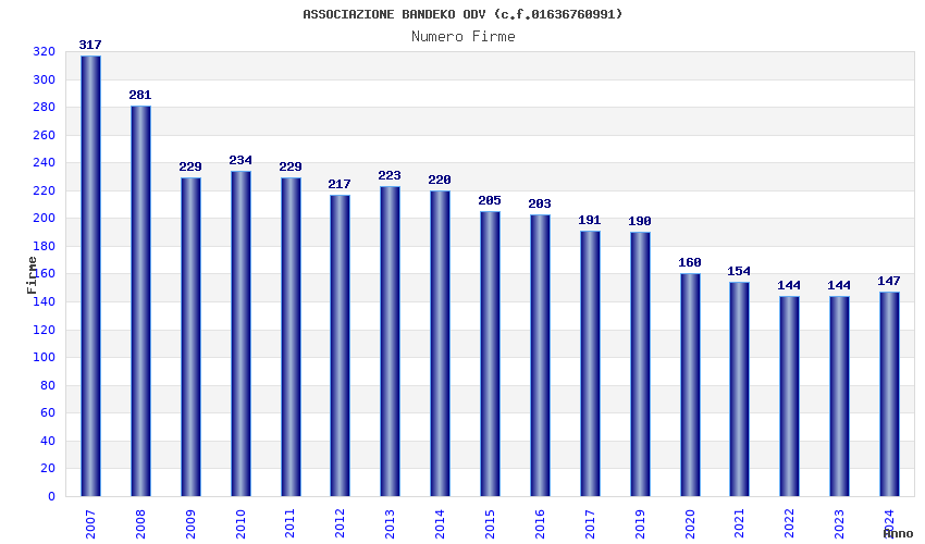 Anno Firme Importi Media Naz. Reg. Prov. Comu.