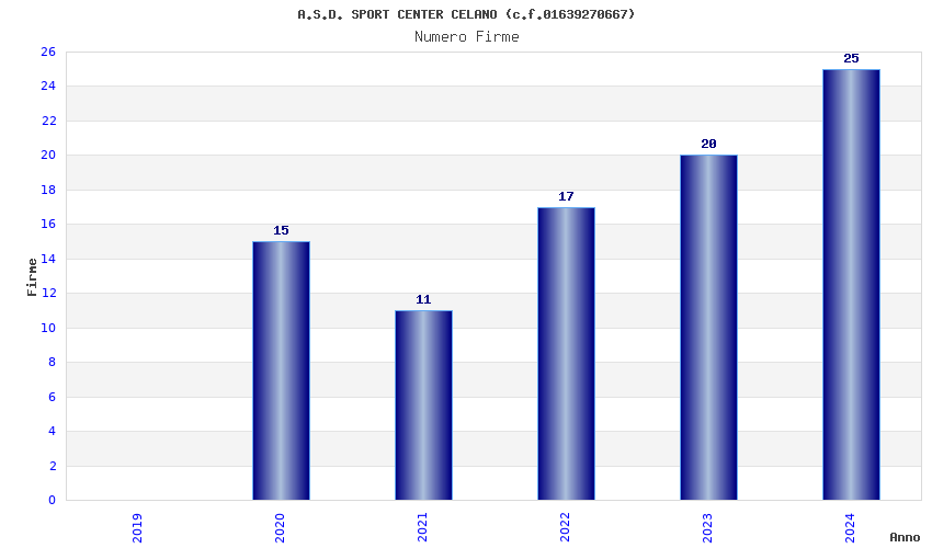 | Anno | Firme | Importi | Media | Naz. | Reg. | Prov. | Comu. |