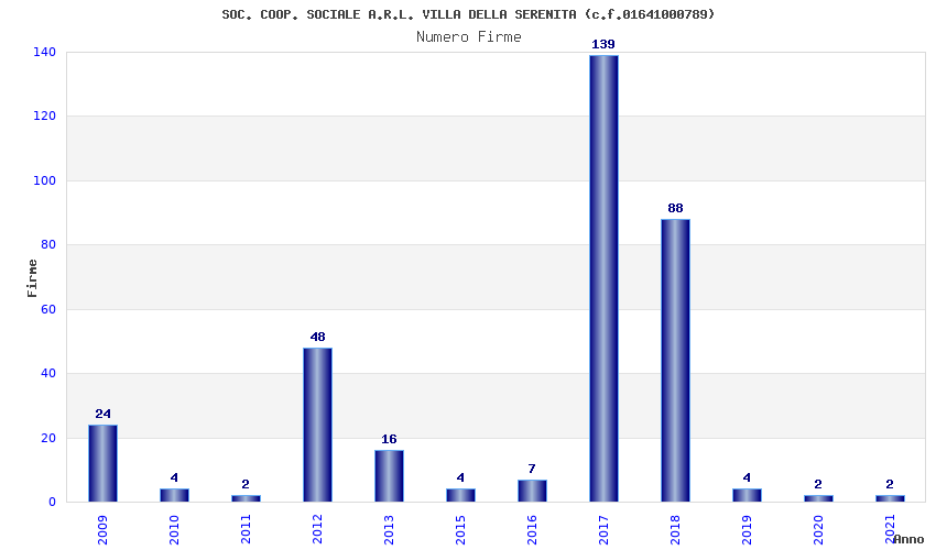 | Anno | Firme | Importi | Media | Naz. | Reg. | Prov. | Comu. |