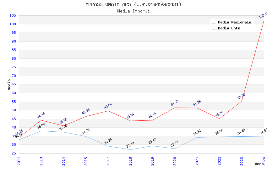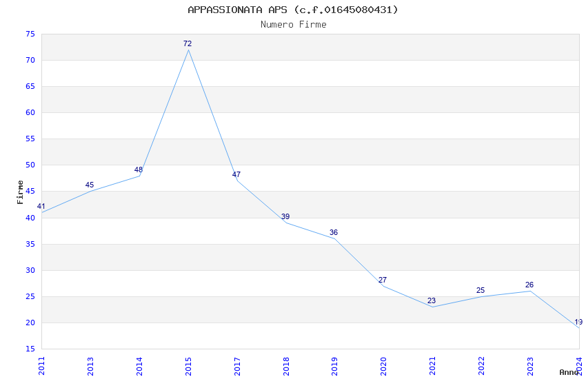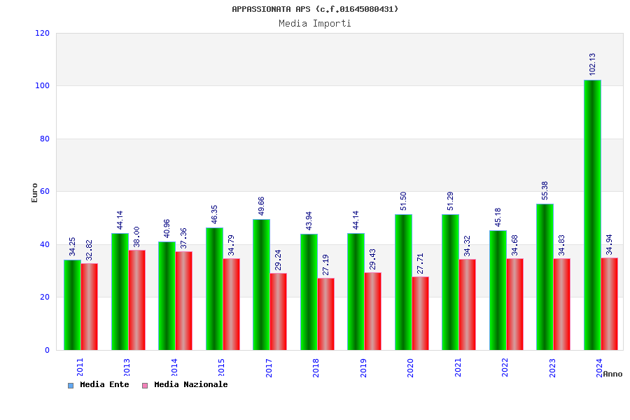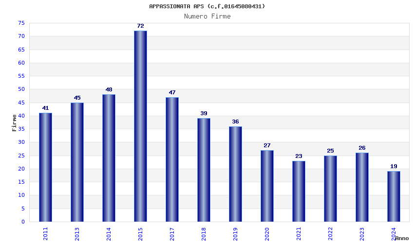 | Anno | Firme | Importi | Media | Naz. | Reg. | Prov. | Comu. |