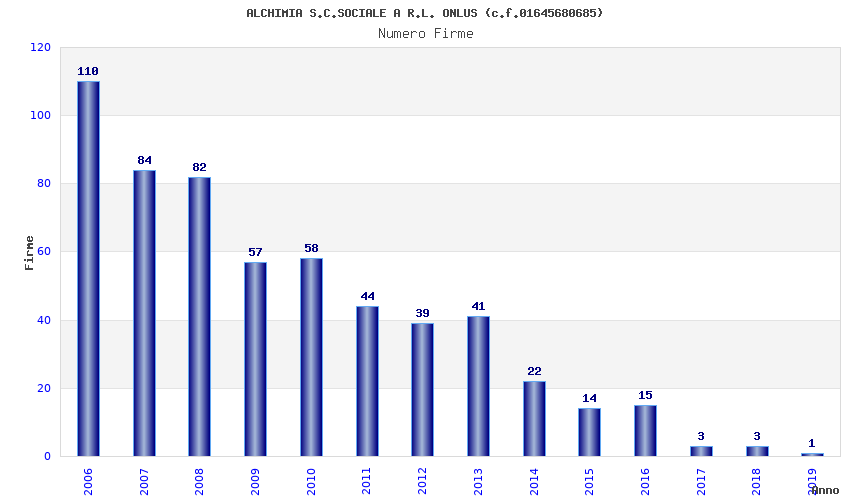 | Anno | Firme | Importi | Media | Naz. | Reg. | Prov. | Comu. |
