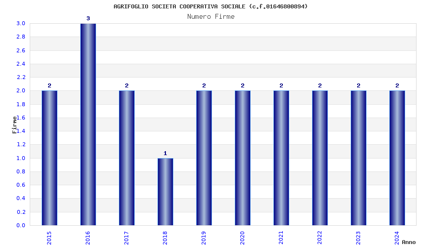 | Anno | Firme | Importi | Media | Naz. | Reg. | Prov. | Comu. |