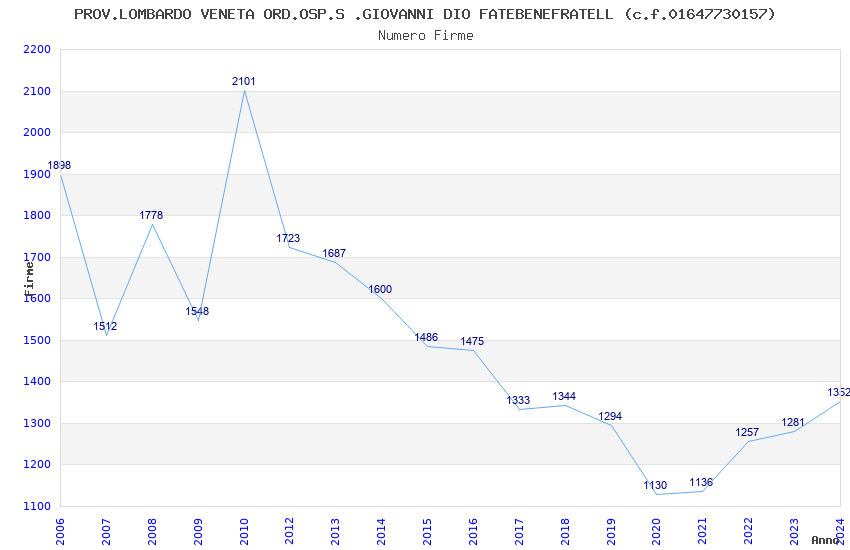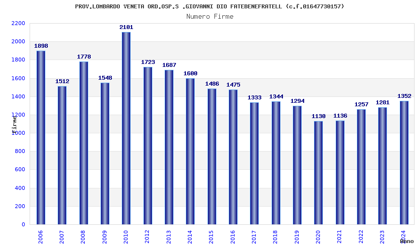 | Anno | Firme | Importi | Media | Naz. | Reg. | Prov. | Comu. |