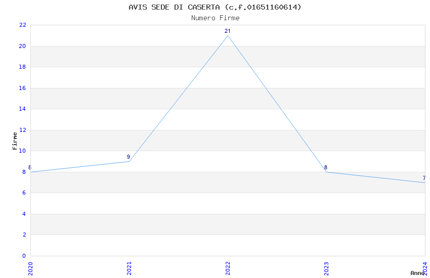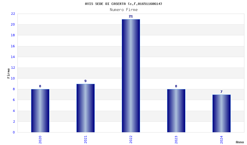 | Anno | Firme | Importi | Media | Naz. | Reg. | Prov. | Comu. |