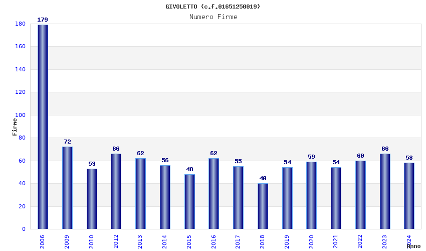 | Anno | Firme | Importi | Media | Naz. | Reg. | Prov. | Comu. |