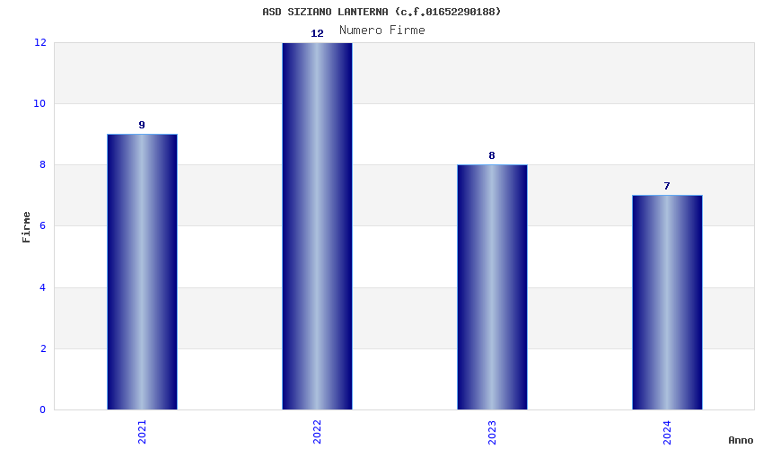 | Anno | Firme | Importi | Media | Naz. | Reg. | Prov. | Comu. |