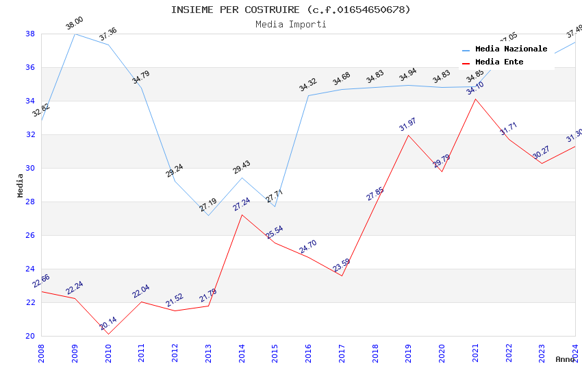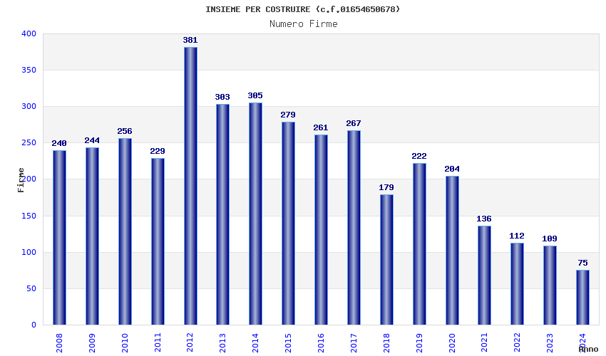 | Anno | Firme | Importi | Media | Naz. | Reg. | Prov. | Comu. |