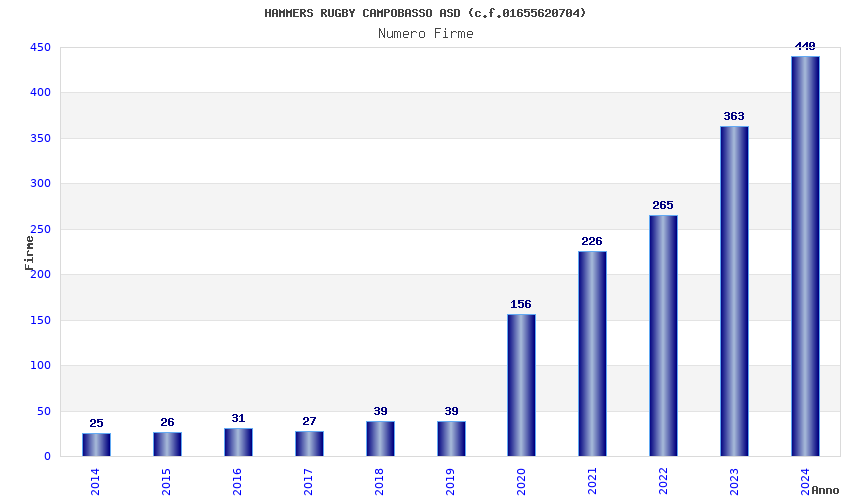 | Anno | Firme | Importi | Media | Naz. | Reg. | Prov. | Comu. |