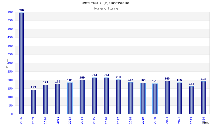 | Anno | Firme | Importi | Media | Naz. | Reg. | Prov. | Comu. |
