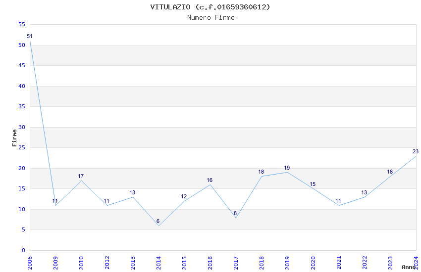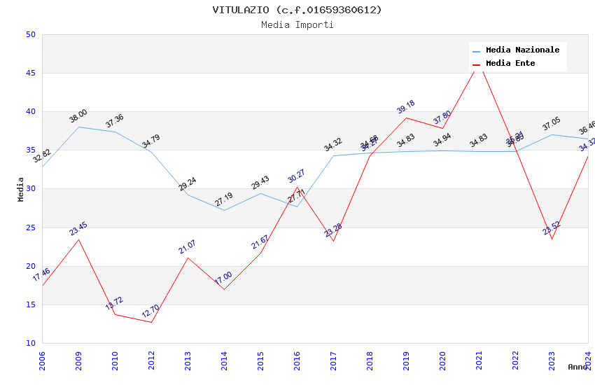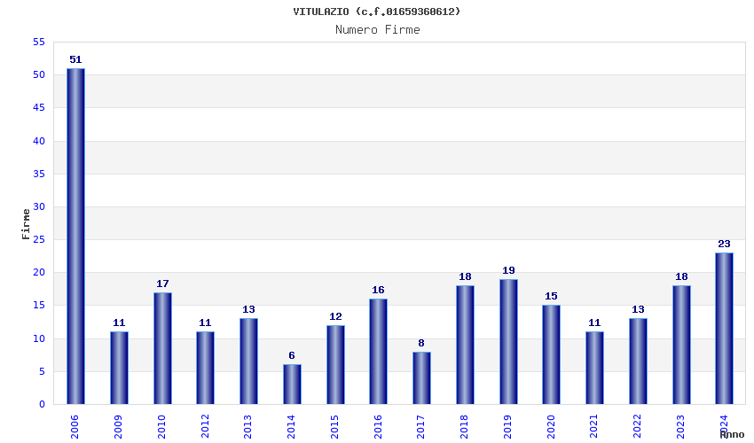 | Anno | Firme | Importi | Media | Naz. | Reg. | Prov. | Comu. |