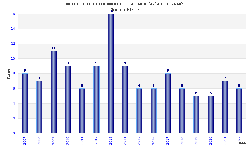 | Anno | Firme | Importi | Media | Naz. | Reg. | Prov. | Comu. |