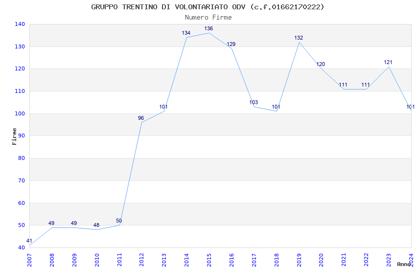 | 2015 | 136 | 5.615,16 | 41,29 | 9.485 | 196 | 88 | 41 |