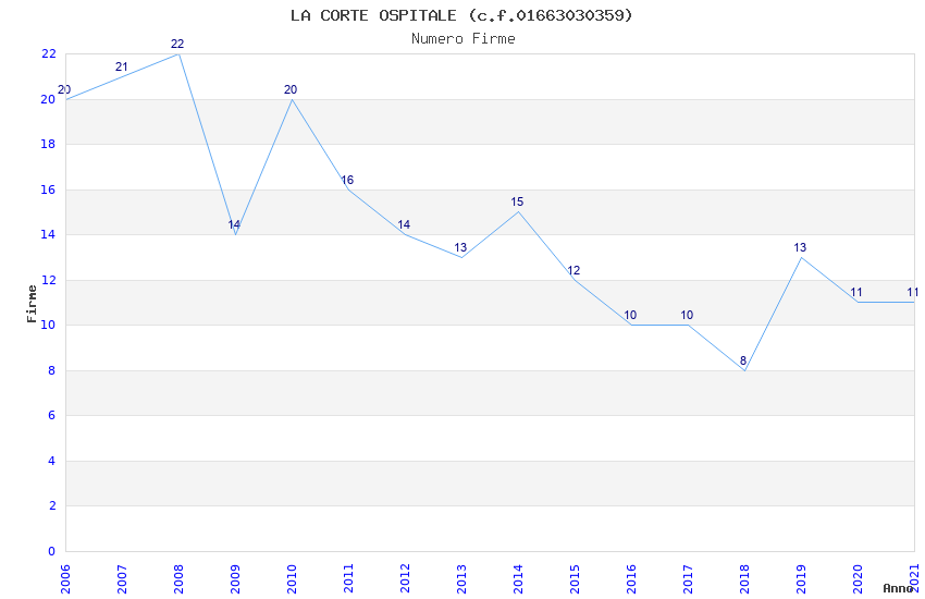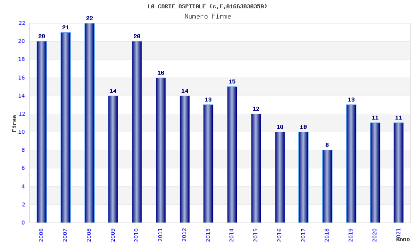 | Anno | Firme | Importi | Media | Naz. | Reg. | Prov. | Comu. |