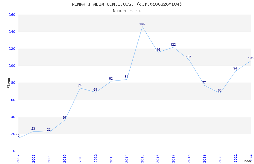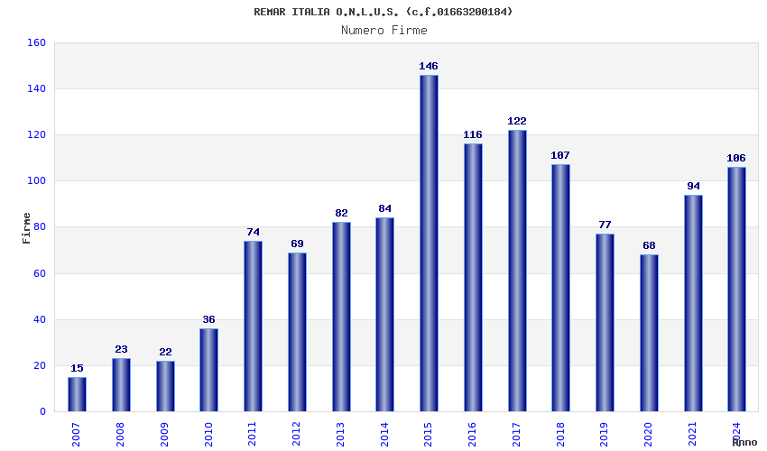 | 2015 | 146 | 4.617,03 | 31,62 | 11.478 | 2.690 | 1.070 | 710 |