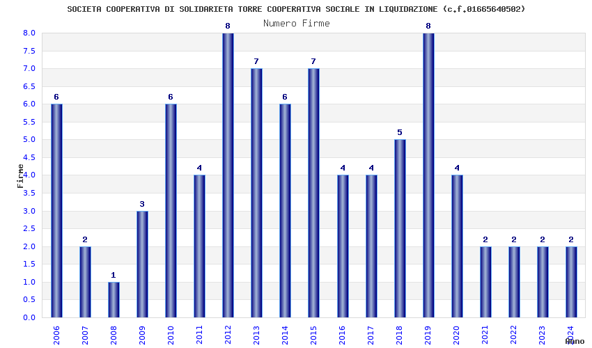 | Anno | Firme | Importi | Media | Naz. | Reg. | Prov. | Comu. |