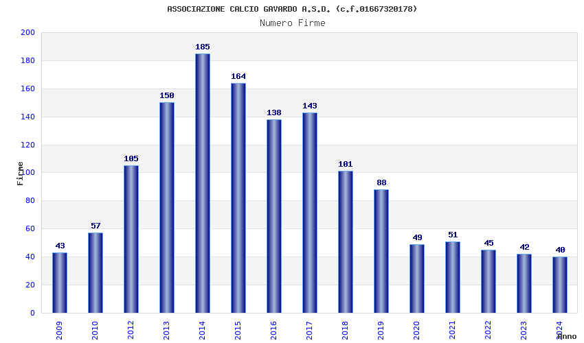 | Anno | Firme | Importi | Media | Naz. | Reg. | Prov. | Comu. |