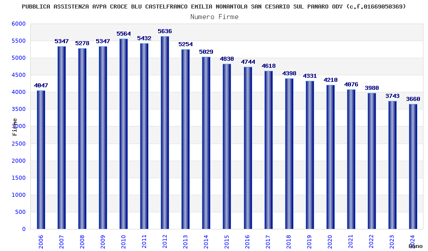 | Anno | Firme | Importi | Media | Naz. | Reg. | Prov. | Comu. |