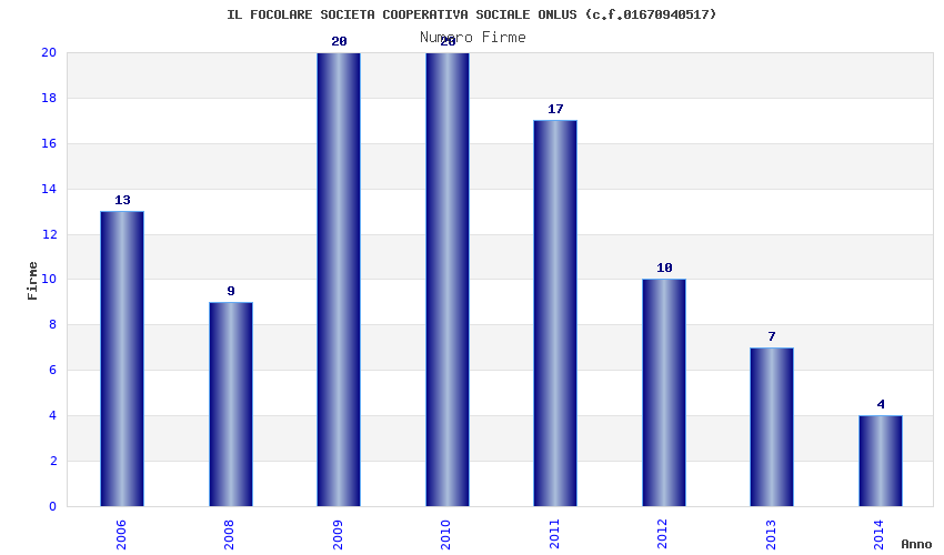 | Anno | Firme | Importi | Media | Naz. | Reg. | Prov. | Comu. |
