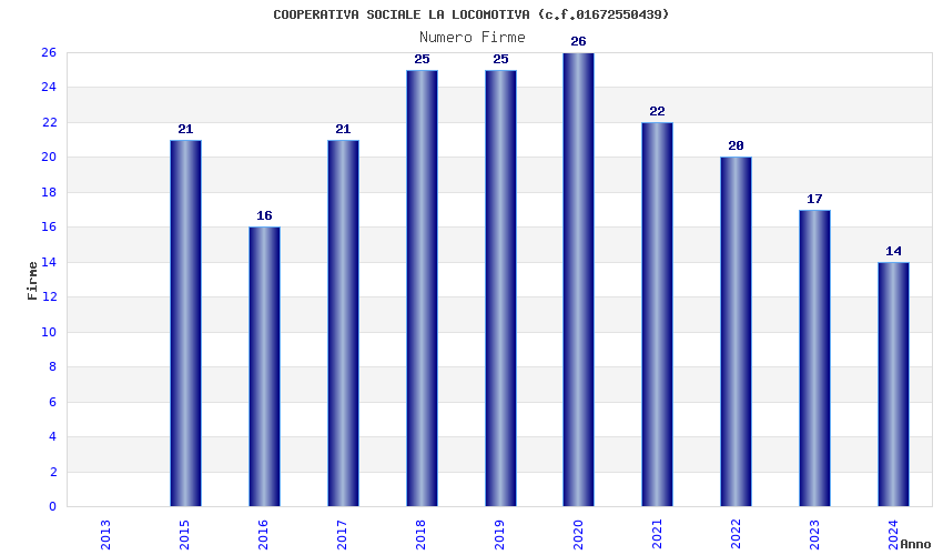 | Anno | Firme | Importi | Media | Naz. | Reg. | Prov. | Comu. |