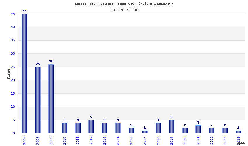 | Anno | Firme | Importi | Media | Naz. | Reg. | Prov. | Comu. |