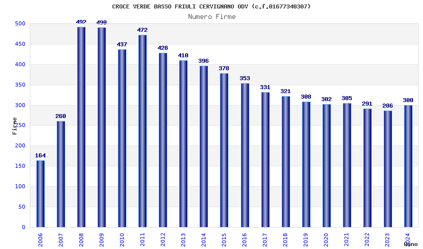 | Anno | Firme | Importi | Media | Naz. | Reg. | Prov. | Comu. |