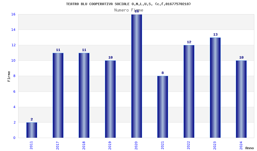 | Anno | Firme | Importi | Media | Naz. | Reg. | Prov. | Comu. |