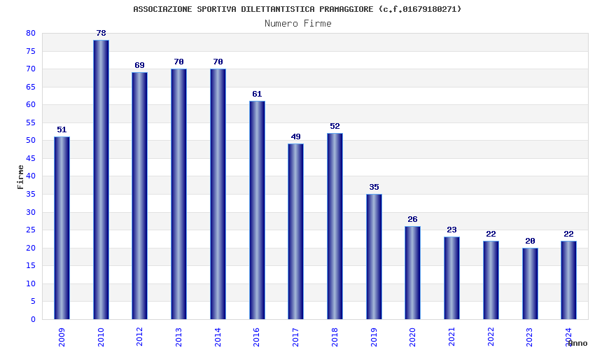 | 2013 | 70 | 1.833,71 | 26,20 | 19.491 | 1.877 | 272 | 2 |